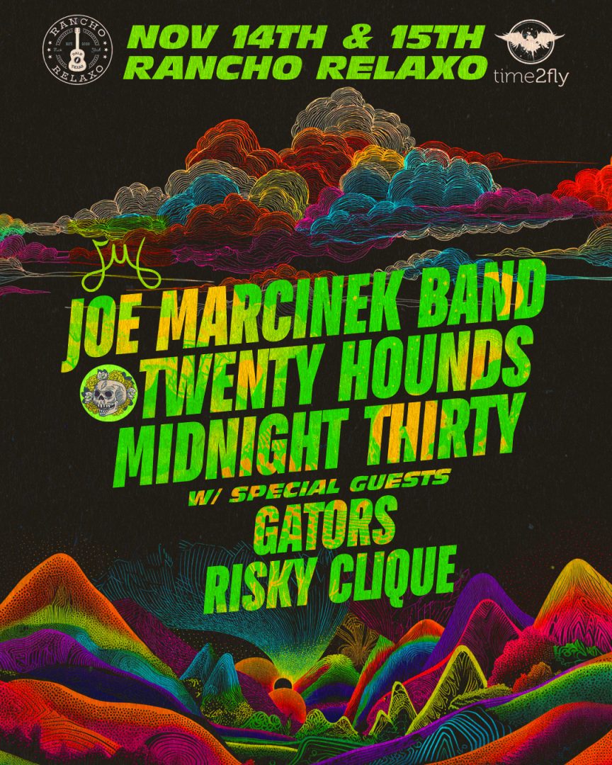 Live music, camping, community, and jamily vibes at Rancho Relaxo Nov 15th featuring Joe Marcinek Band, Grateful Dead Tribute ‘Twenty Hounds’, and Gators